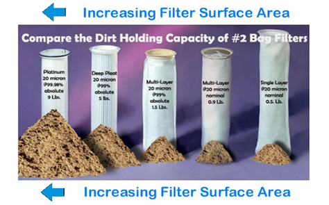 Pleated Bag Filters are designed to fit the following vessels: Rosedale, FSI, 3M, GAF, Knight, Fulflo, Barron, Fil-Trek, FTC, Fulflow, RP, Pleasant, Hayward, Champion Process, Pall, Parker, and Nowata. Upgrade and obtain over 10 times the solids holding capacity. Don't see your bag filter vessel, we will build a filter for you.