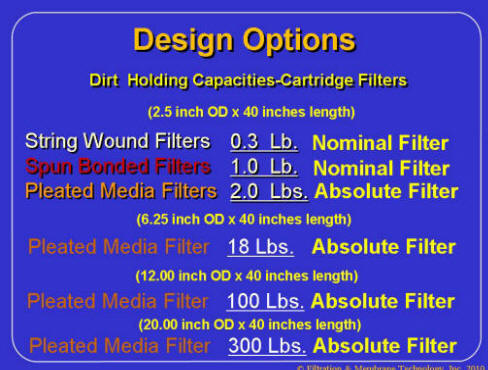 The design engineer will be confronted with the question of nominally rated filters and absolute rated filters. Most nominal rated filters are found in single layer bag filters and cartridge filters employing coiled string or media that does not have a